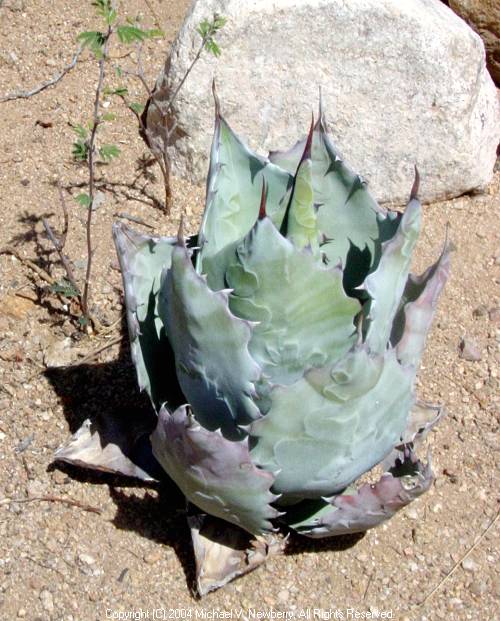 In habitat in Sonora, plants have rosettes that open widely. This plant comes from a Sonoran population that forms dense rosettes having very large teeth. |